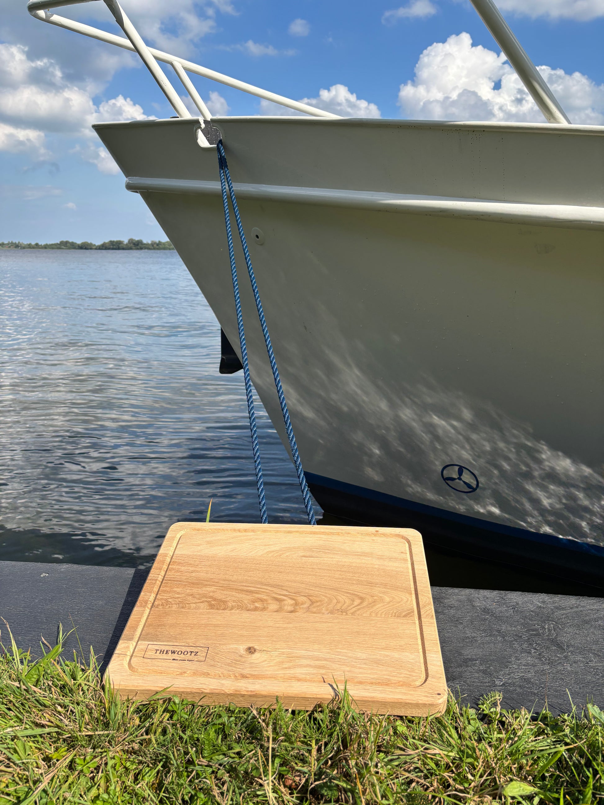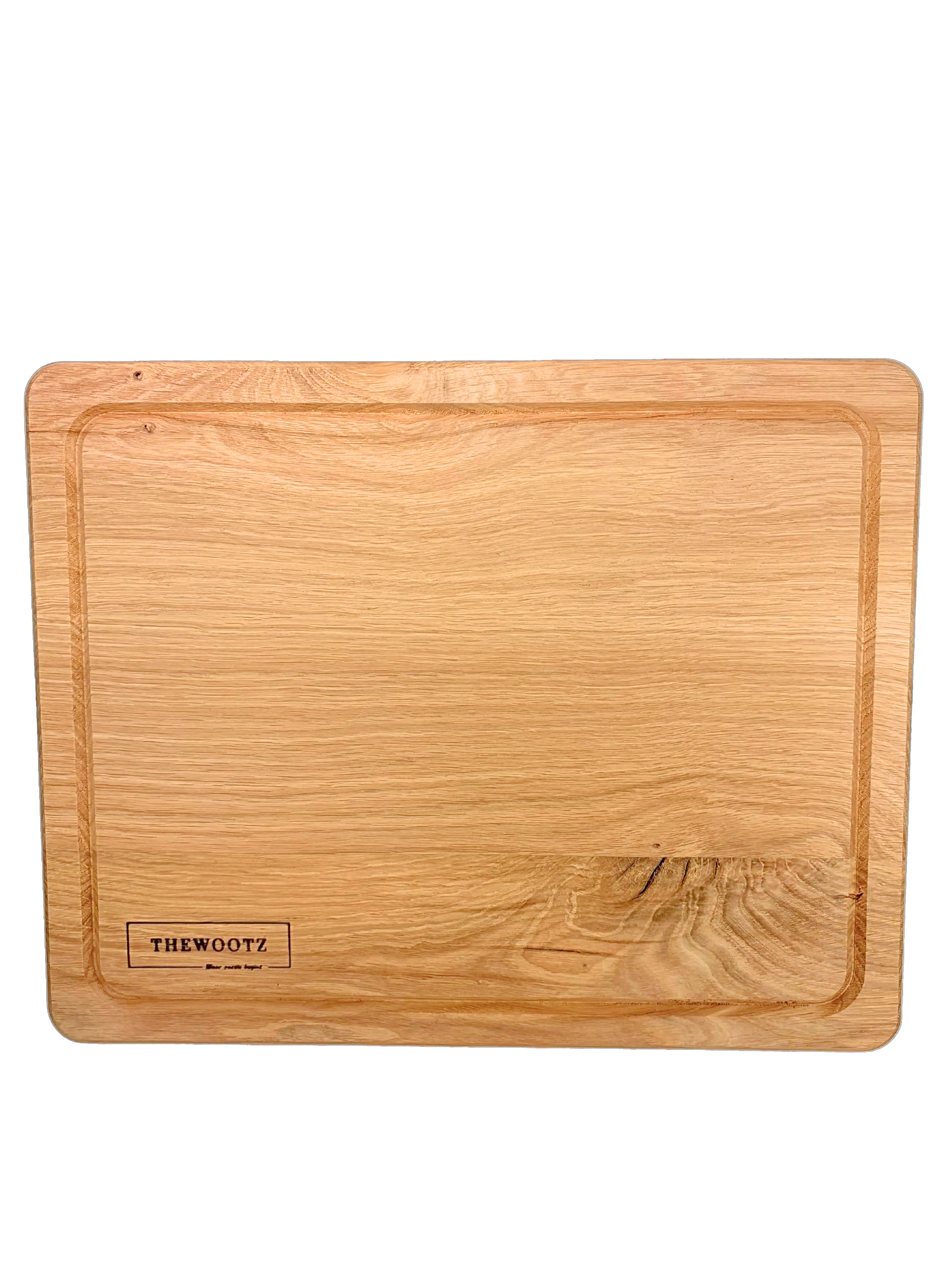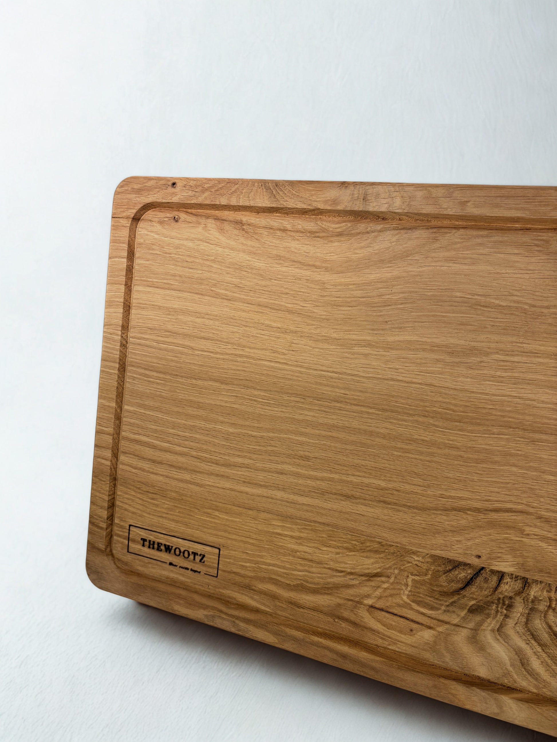 TheWootz luxe houten snijplank met sapgeul is gemaakt van massief eikenhout. Duurzaam, hygiënisch en perfect voor koken of serveren. Handgemaakt in Nederland, met vlak werkoppervlak en stijlvol design.